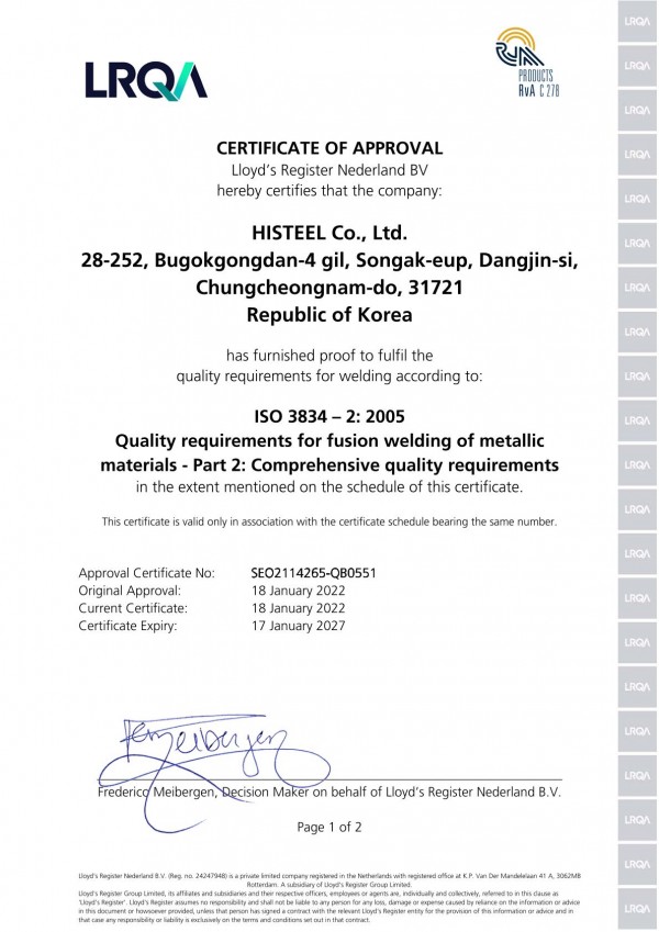 SAW ISO 3834-2: 2005 페이지 정보 작성일 25-12-29 10:59 본문 ISO 3834-2: 2005 (2022.01.18~2027.01.17) Descargar ISO3834-2Certificate2022.01.18~2027.01.17.jpg (195.7K) 1.jpg (180.6K) 수정 삭제 Lista Impresión