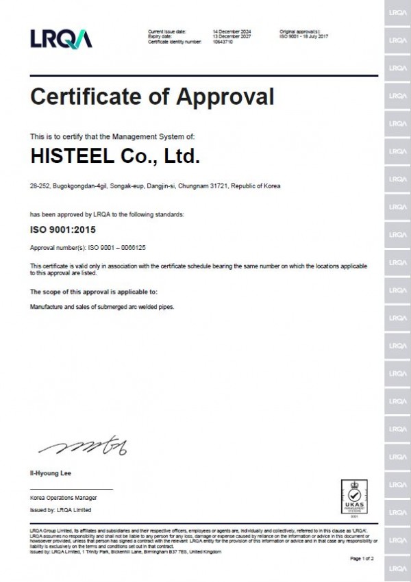 SAW ISO 9001:2015 페이지 정보 작성일 25-12-29 11:02 본문 ISO 9001:2015 (2024.12.14~2027.12.13 Descargar ISO 9001;2015-HISTEEL_page001_2024.12.14~2027.12.13.JPG (59.6K) ISO 9001;2015-HISTEEL_page002_2024.12.14~2027.12.13.JPG (47.4K) ISO 9001;2015-HISTEEL 2024.12.14~2027.12.13.PDF (836.9K) 수정 삭제 Lista Impresión