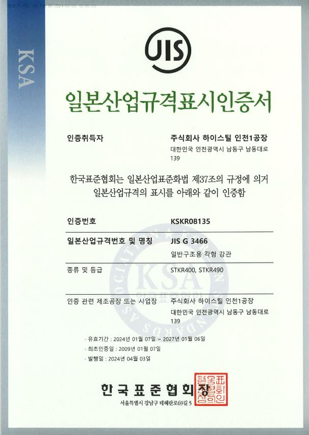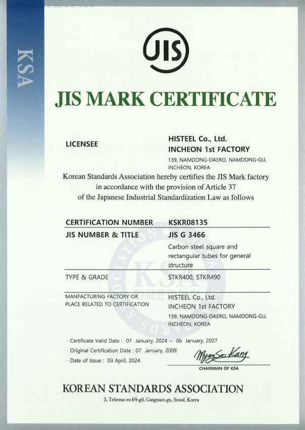 ERW JIS G 3466 페이지 정보 작성일 25-12-22 10:34 본문 JIS G 3466(24.02.16 ~ 27.01.06) File JIS G 346624.01.07 ~ 27.01.06_ENG.JPG (69.4K) JIS G 346624.01.07 ~ 27.01.06_KR.JPG (64.2K) JIS G 346624.01.07 ~ 27.01.06_JP.JPG (65.1K) 수정 삭제 List Print