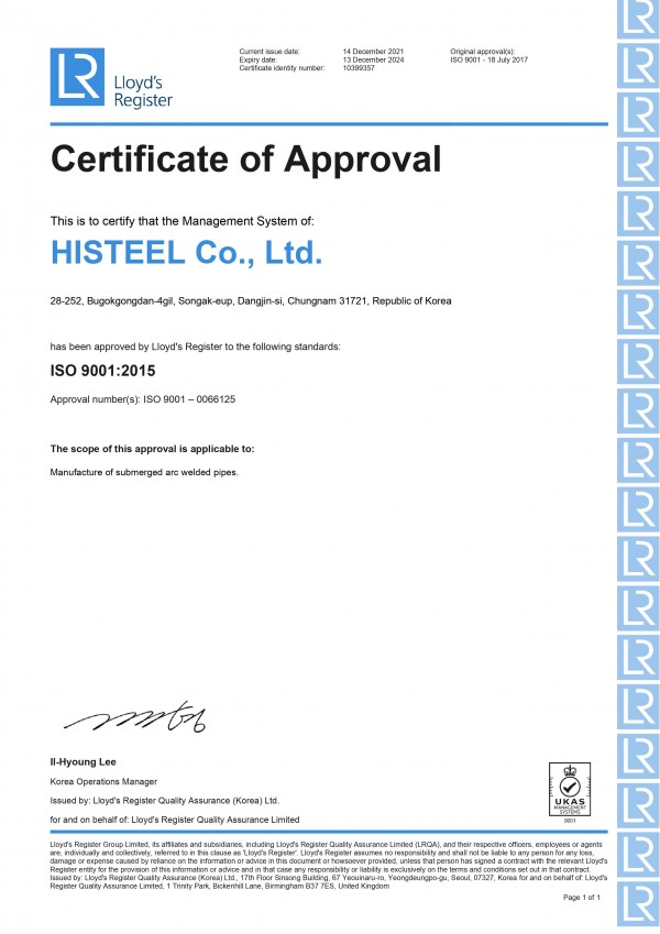 SAW ISO 9001:2015-HISTEEL 페이지 정보 작성일 22-01-27 15:34 본문 ISO 9001;2015-HISTEEL (2021.12.14~2024.12.13) Descargar ISO 9001;2015-HISTEEL 2021.12.14~2024.12.13.jpg (496.5K) Lista 글쓰기 Impresión